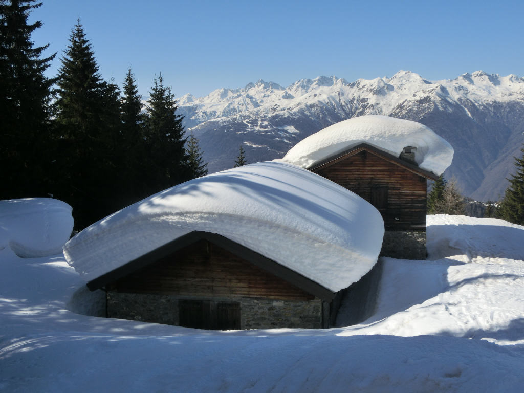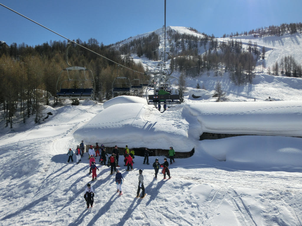 ... und so viel Schnee im Skigebiet, dass diese Sesselbahn ohne Schaufeln eine Zwischenstation auf dem Dach der Alphütte bekommen hätte.