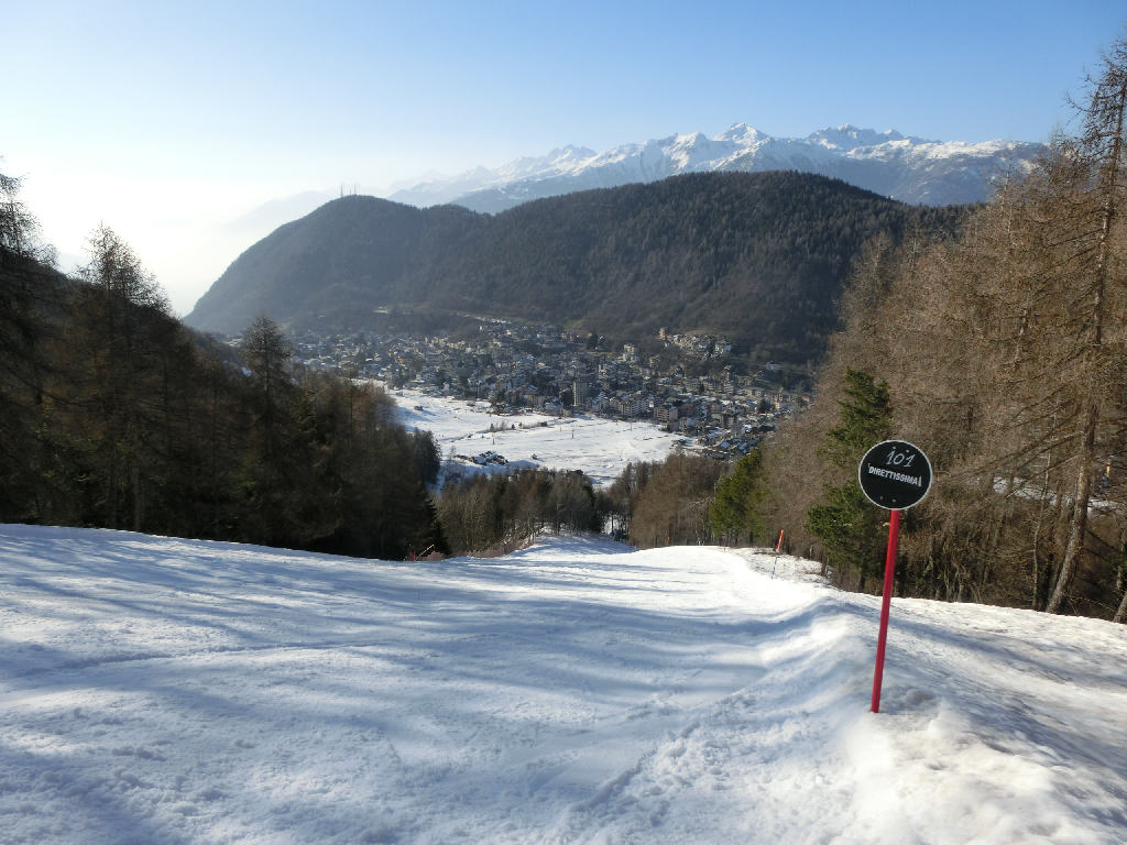 Da die Talabfahrt nur bis zur Mittelstation geöffnet war, der Schnee selbst da zu wünschen übrig ließ und es andere schöne Pisten gab, haben wir uns die nicht angetan.