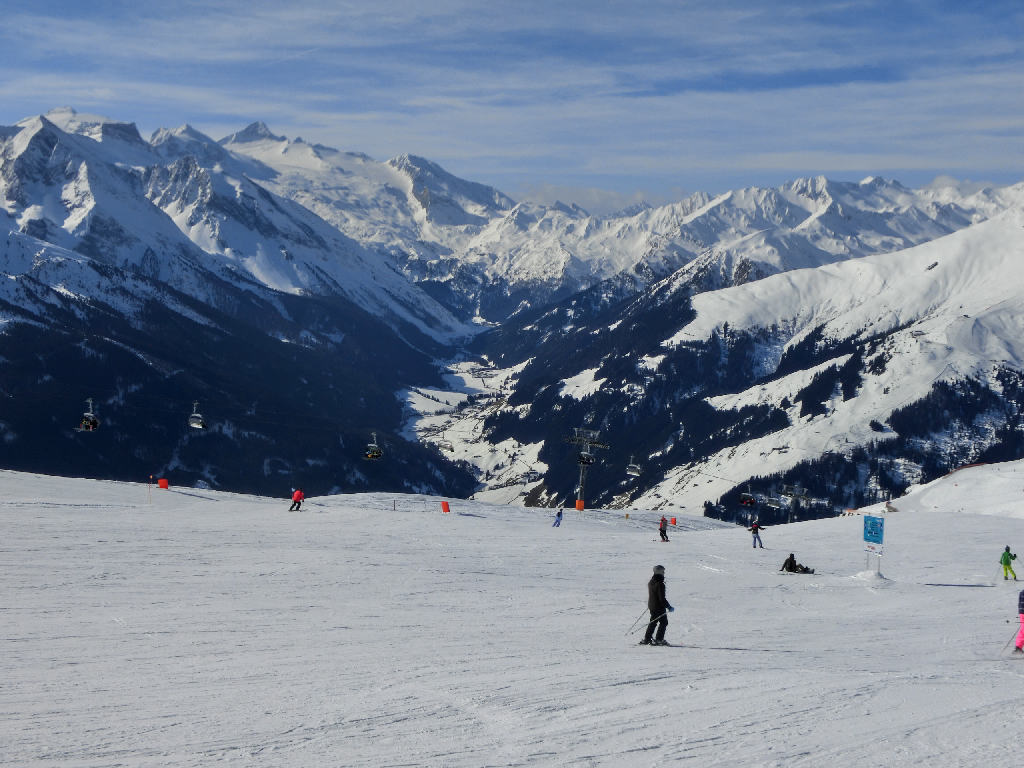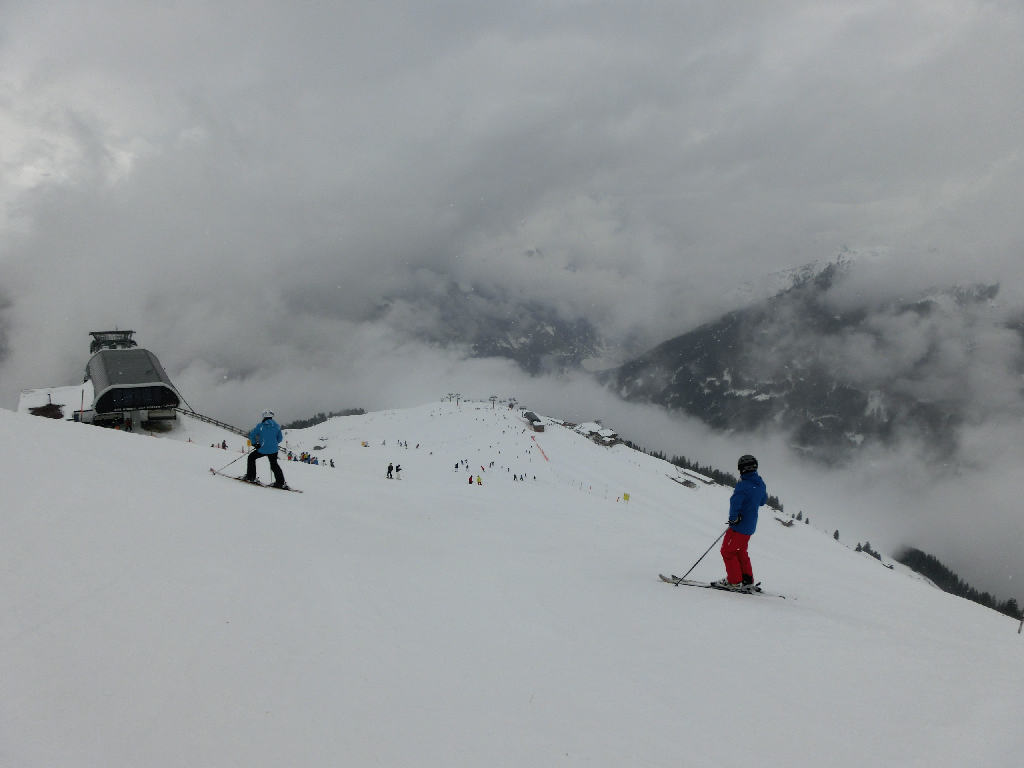 Wir hatten inzwischen fast so etwas wie eine Standardroute. Die Lifte fuhren zwar schon ab 07:30, da es Frühstück aber erst ab 07:00 gab waren wir nich vor 08:30 auf dem Berg. Zunächst wurde sich auf der blauen 5 eingefahren. Danach ging es mit dem Sonnenjet 8er Sessel über die blaue 12 und rote 1 bzw. schwarze 4 nach Hochfügen. Die 1 ist im unteren Bereich zwar sehr breit aber auch relativ steil und war schon recht harschig. Für Anfänger ist die vermutlich eher nicht geeignet. Drüben sind wir dann nach Lust und Laune die rote 10 oder die schwarzen 6 und 7 gefahren. Wir hatten den Eindruck, dass der Schnee in diesem Gebiet ab Mittag durch die Sonne deutlich schlechter wird und sind deswegen noch vor dem Mittag zurück und haben in der Wedelhütte Vormittagspause gemacht. Alles ein wenig Etepetete da, aber es bietet sich ein toller Ausblick. Je nachdem, wie fit die Beine dann waren, ging es über die rote oder schwarze 13 zurück ins Hochzillertal. Dort ging es dann über die rote 5 zum Schnee-Express. Dort konnte man dann rüber zur roten 10 queren und mit dem Kristallexpress nach oben. Dort war dann auch Zeit für eine kurze Mittagspause in der Kristallhütte. Die bietet ein ebenso tolles Panorama wie die Wedelhütte. Der Kaiserschmarn ist der beste im Skigebiet, aber die Gulaschsuppe nicht so toll.